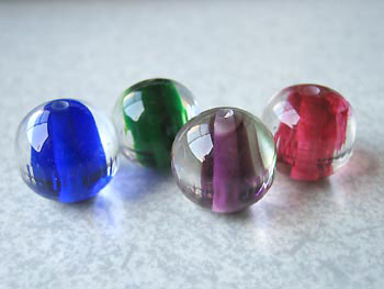 中心に色の入った玉の中央に細かい線の入った丸いとんぼ玉を1つ作り
